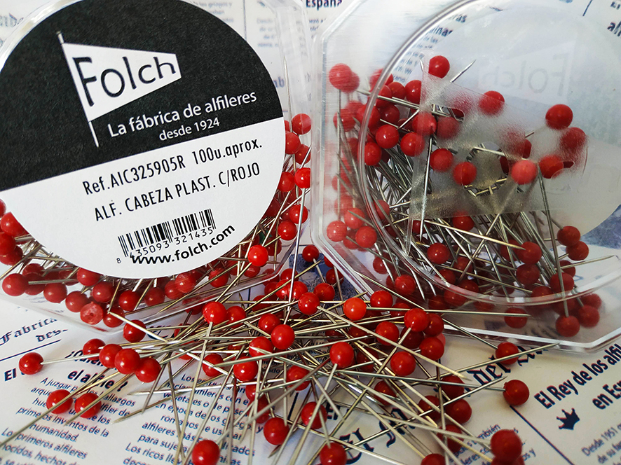 Coloured ball head pins, easy to use for his length and easy to see for his colour.